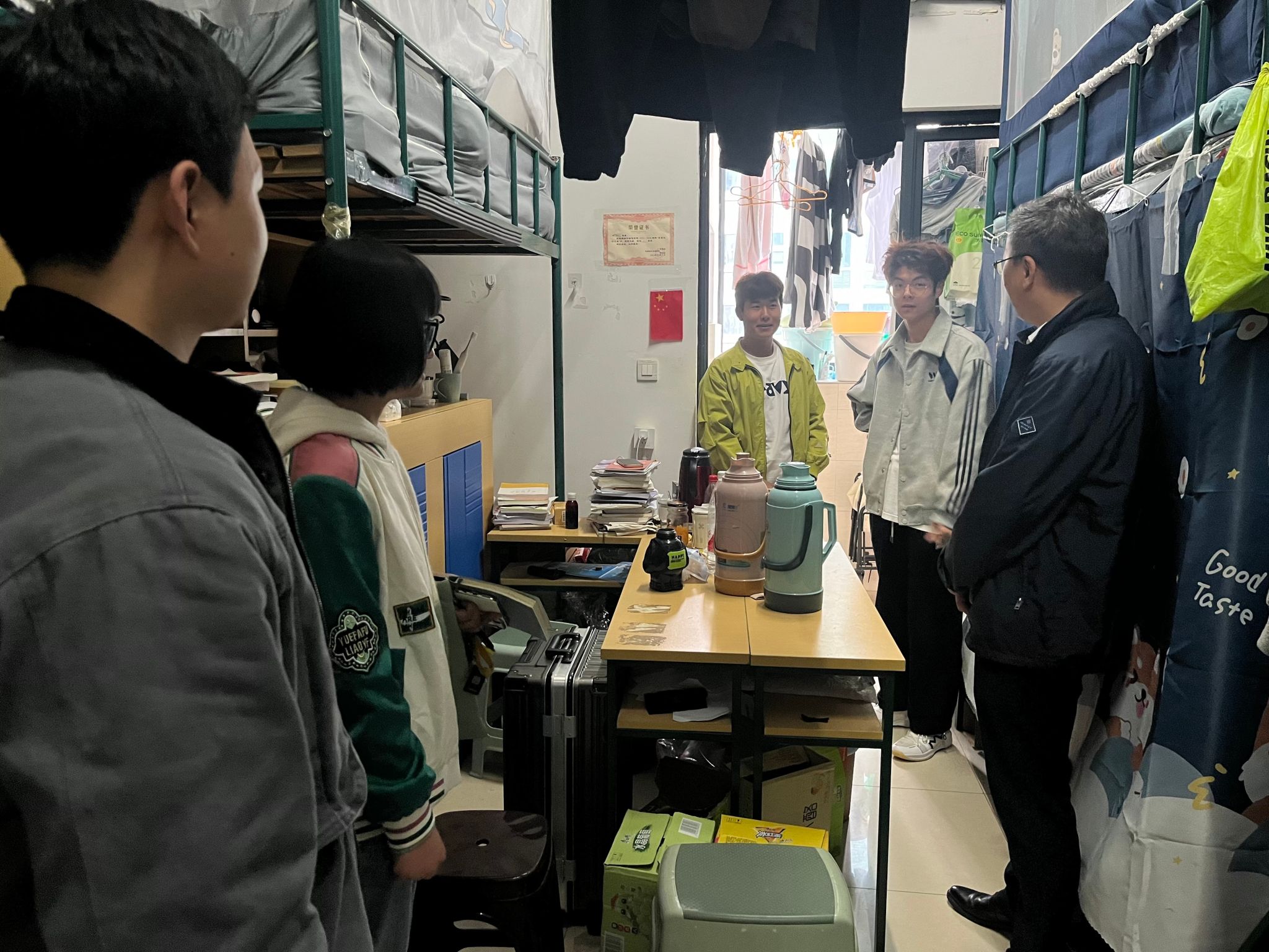 4月30日下午,公司党委书记冯鑫、副书记张博带领部分辅导员深入员工宿舍检查宿舍卫生安全工作。
