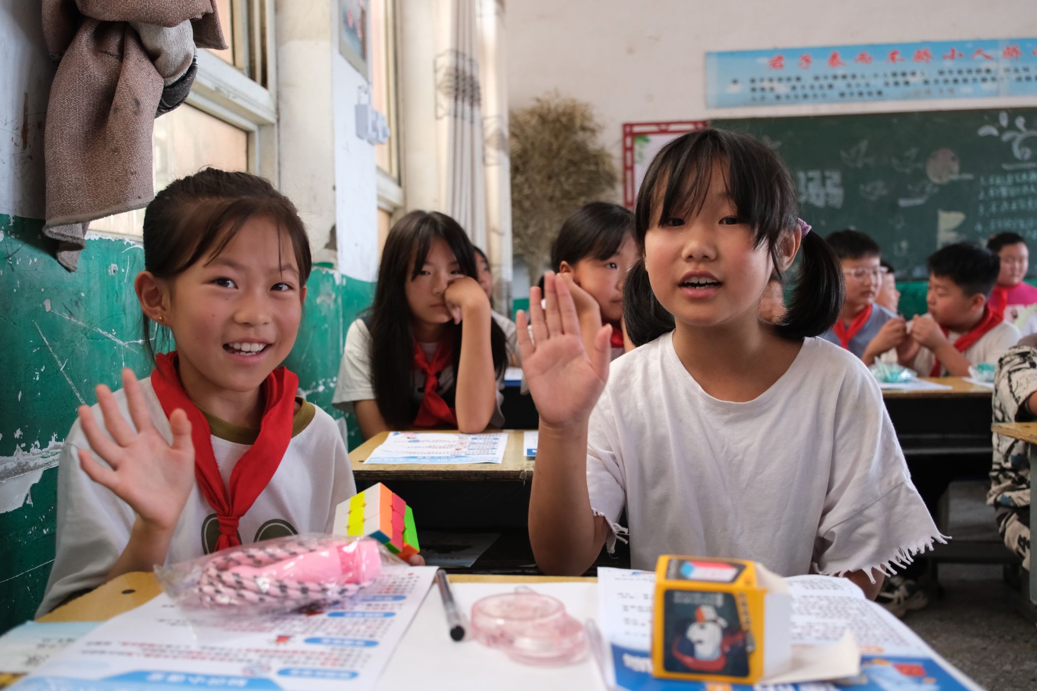 一轮激烈的问答环节之后,原先满满当当的礼品箱子变得空空如也,而小朋友们的课桌上则变得满满当当,有书包,有文具,有魔方……小朋友们的脸上也都挂着自信满意的笑容,通过这样喜闻乐见的问答活动,真正让小朋友们树立了防溺水、防诈骗、注意交通安全等的安全意识。