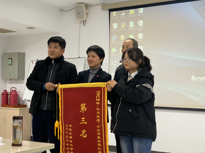 在此之后,由往届《企业仿真决策》课程优秀生组成的仲裁委员会,对汇报与问答的交流给以了评价,并宣读了最终成绩。