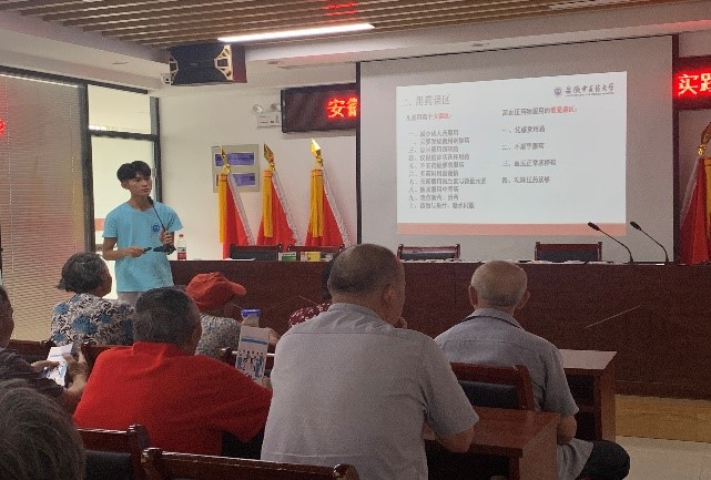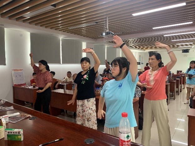 13日下午,志愿队走进环东社区,为当地居民开展了一场生动的日常用药科普知识讲座。志愿者结合课堂中所学的专业知识和自身的亲身经历等,详细解说了如何看药品说明书、日常药品该如何保存、如何正确地使用药品等科学知识,还向居民们展示了一些常见的中药材实物,耐心地向居民讲解它们的功能。志愿者还和现场的爷爷奶奶叔叔阿姨们一起跟着视频学做八段锦,受到大家热烈响应。