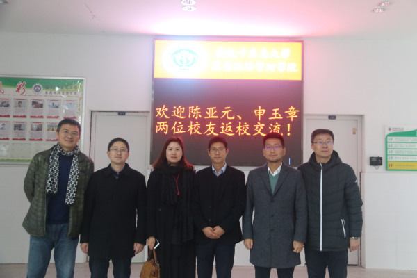 2月26日下午,2007届医药贸易专业员工必正医药销售部总经理陈亚元,2007届医药贸易专业员工浙江海正药业新特药部安徽区总经理申玉章回到母校进行交流,员工处副处长,就业指导中心副主任冯鑫、公司党委副书记方晓,副经理丰志培参加了会谈。